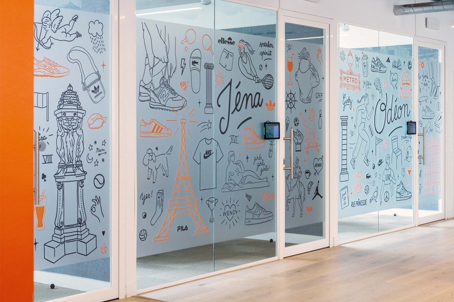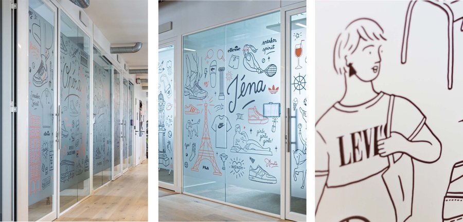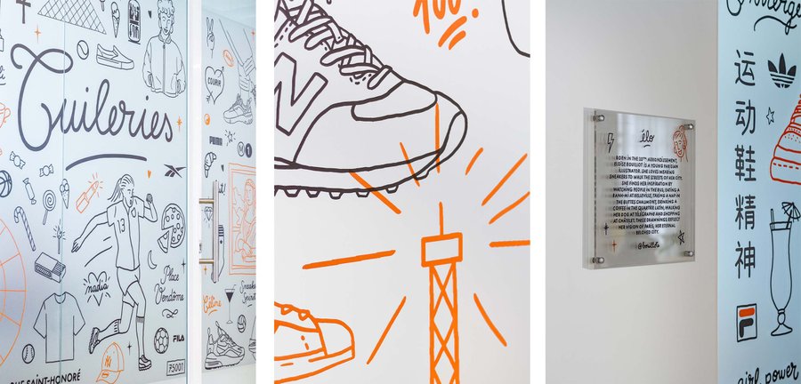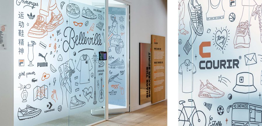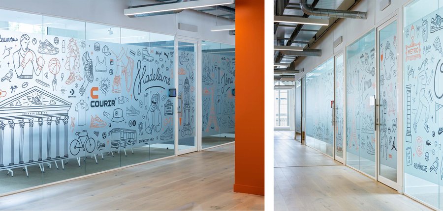 Habillage des nouveaux locaux parisiens de Courir avec Midi:Quinze