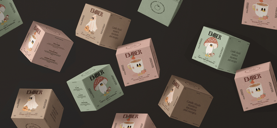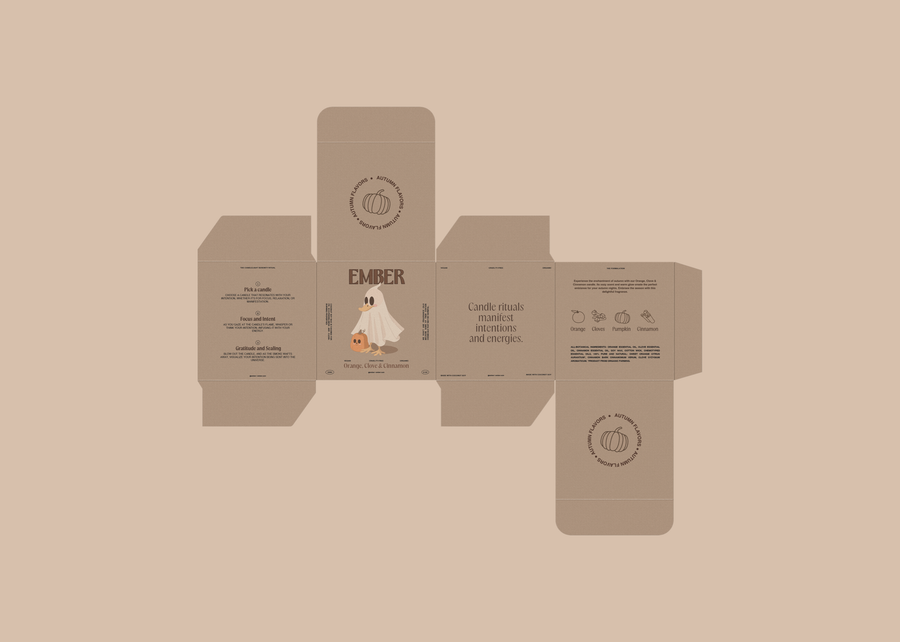 Avec le retour du froid et Halloween qui approche, je voulais que les bougies évoquent une ambiance cozy. Le design est inspiré des épices de citrouille et des nuits au coin du feu.