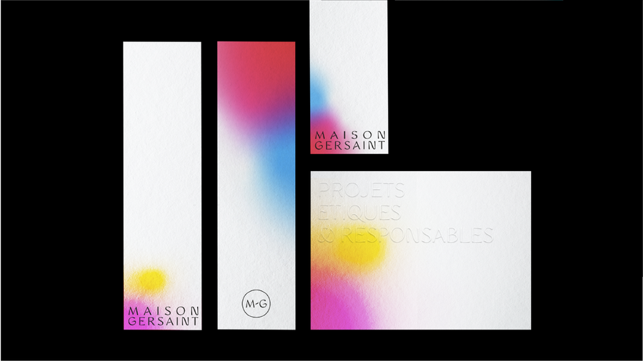 Le logo est embossé sur un papier recyclé, les dégradés sont imprimés en Pantone.
