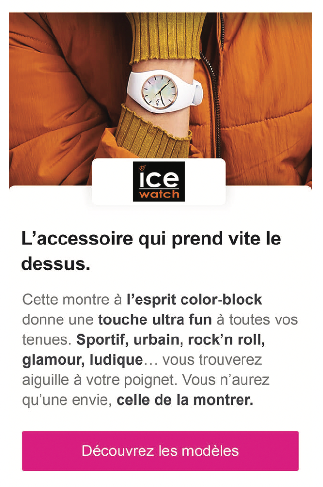 Accroche : Ice Watch, l’accessoire qui prend vite le dessus.