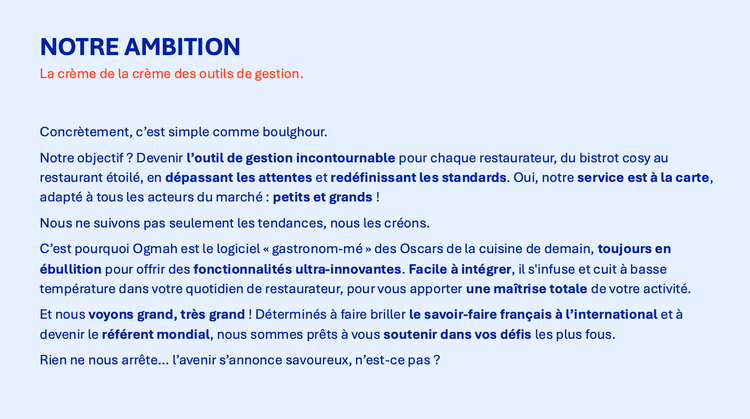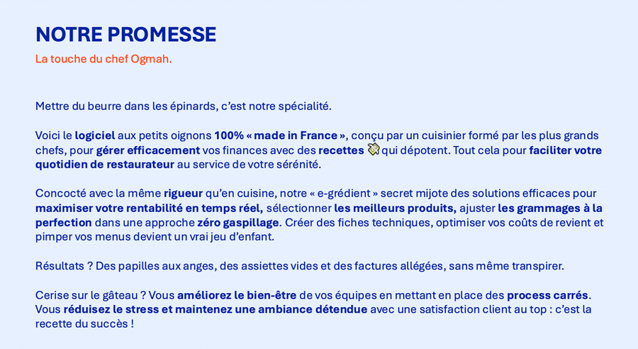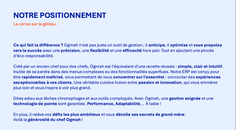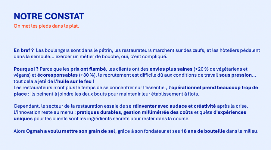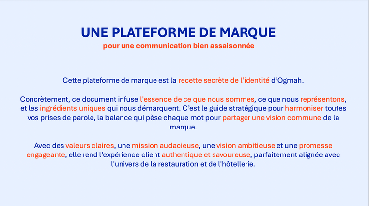 Rédaction de la plateforme de marque d’Ogmah, startup dans le domaine de l’hôtellerie et de la restauration.