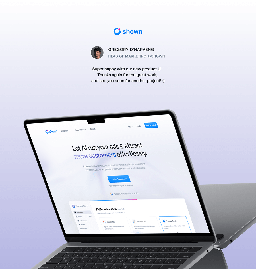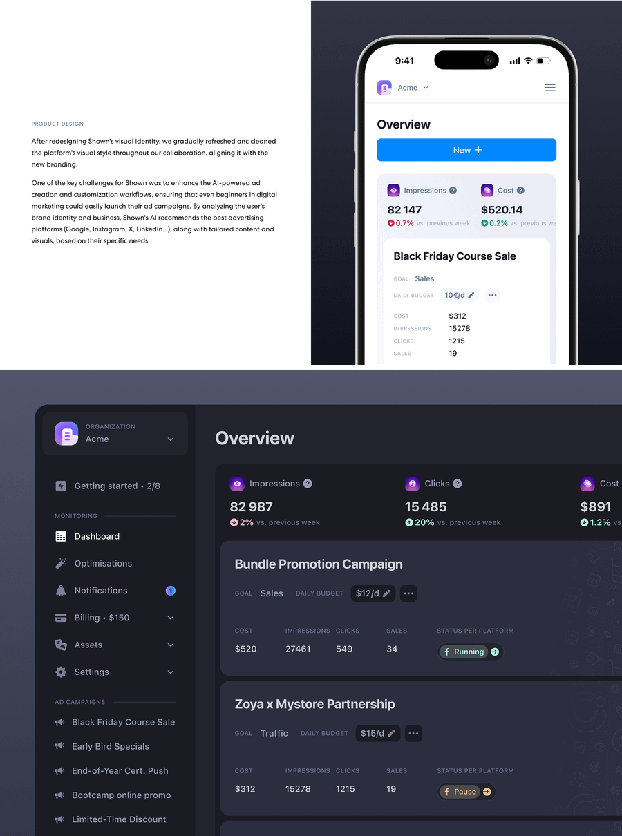 SHOWN AI | Brand Identity & Ads Platform Product Design