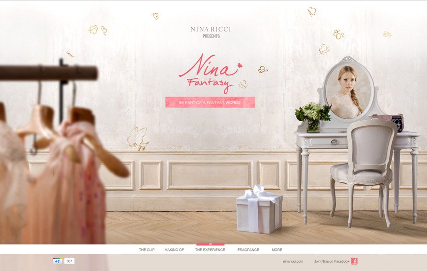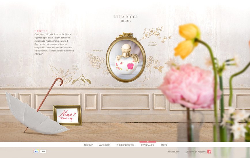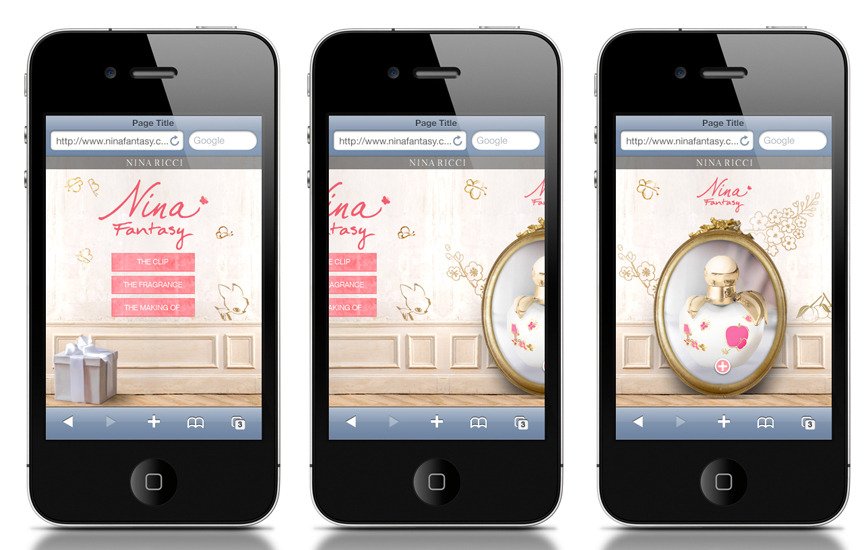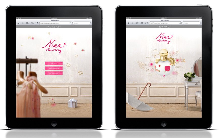 Création du site de lancement du nouveau parfum Nina Ricci : Nina Fantasy. Déclinaison site mobile et ipad