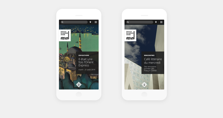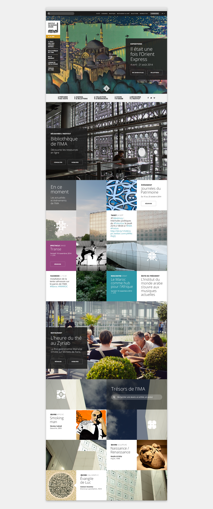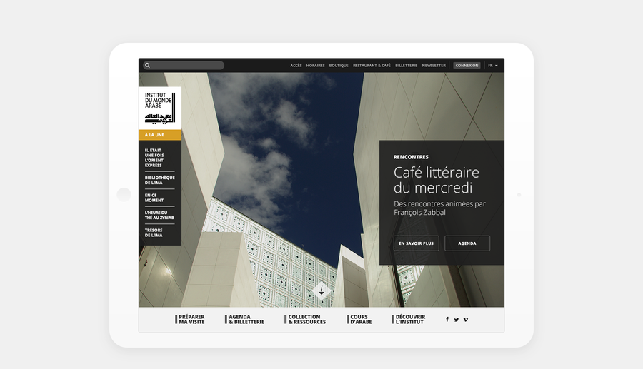 Proposition DA + UX pour le nouveau site web de l'IMA. Collaboration avec l'agence is&a bloom.