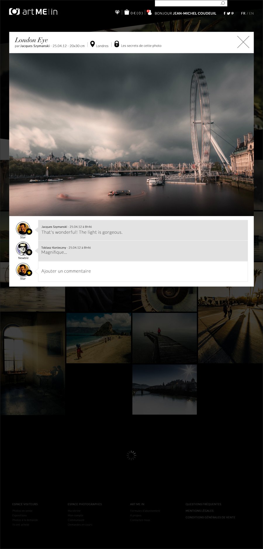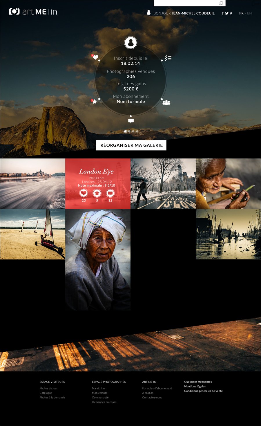 Direction artistique pour Art Me In : un site qui connecte les photographes et les amateurs d'art.