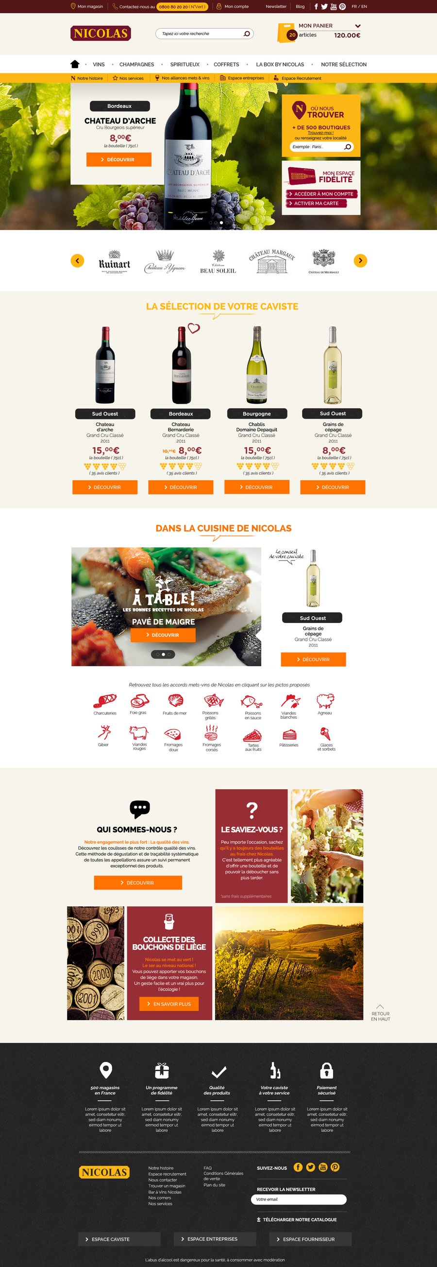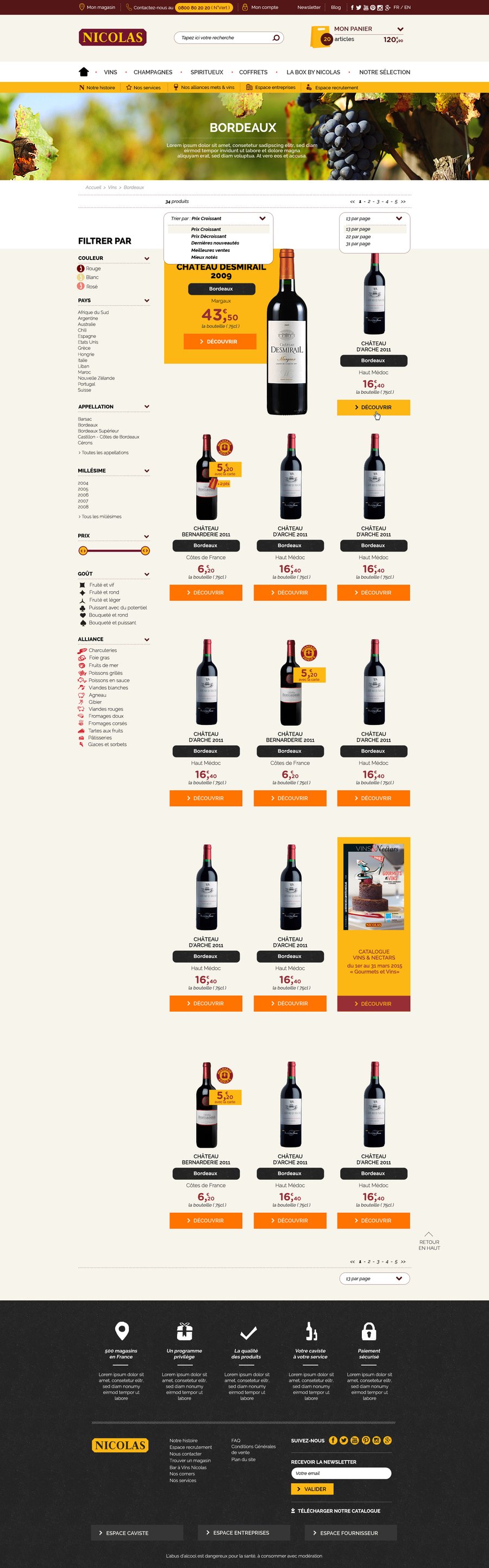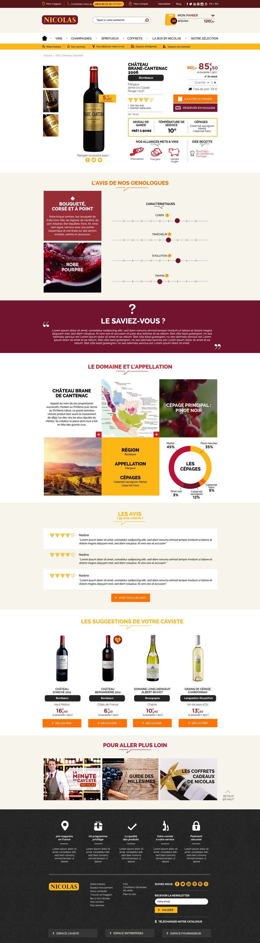 Direction artistique pour le nouveau site e-commerce de Nicolas, ainsi que la version Monde et la version mobile.