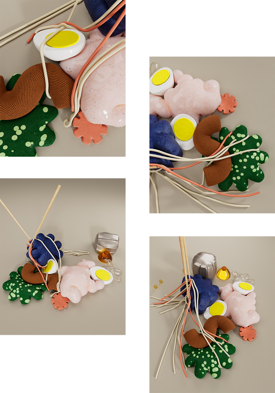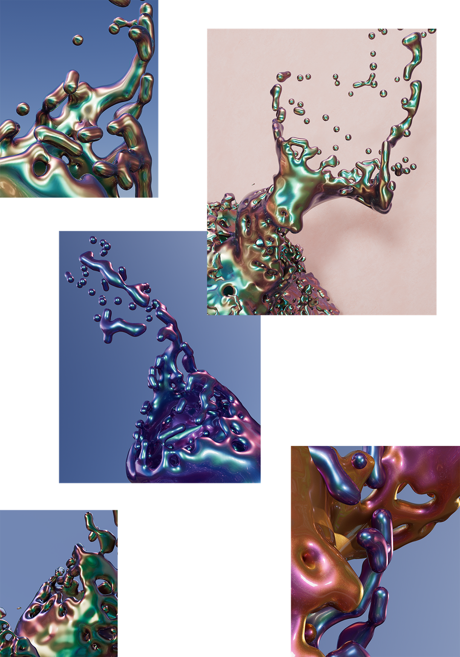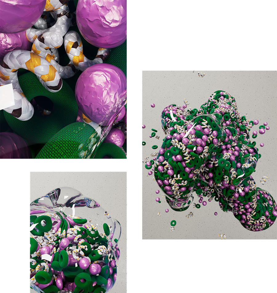 and realistic mini-scenes but still abstract, exploring dynamics in Cinema 4D,