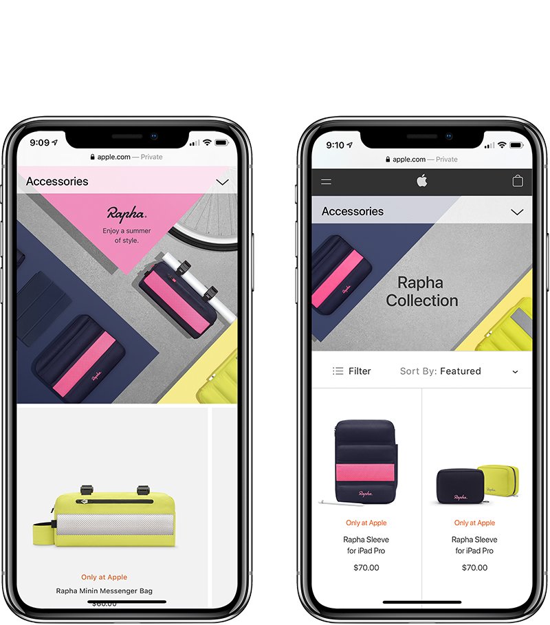 Rapha, the design leader in the cycling world, joined forces with Apple on a collection of water-resistant technology accessories that feature their signature style. I art directed the concept of the photography as well as the actual shoot in close collaboration with the photographer, and other aspects such as the retouching phase. I was also the design lead on the shopping experience representing this collaboration on apple.com.
