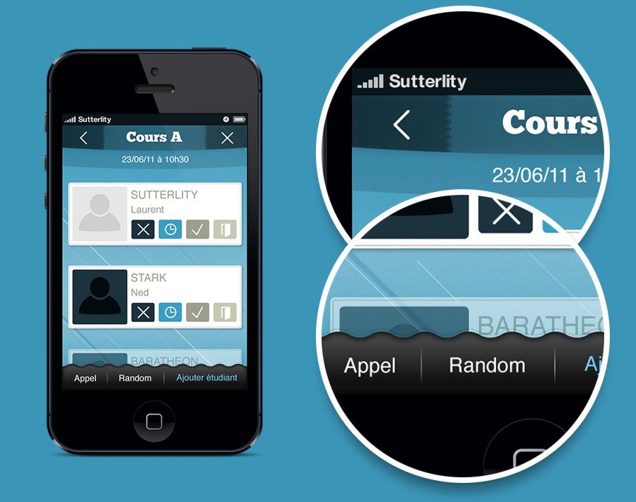 Design et ergonomie de l’application iPhone « Imarge » d’émargement de cours.