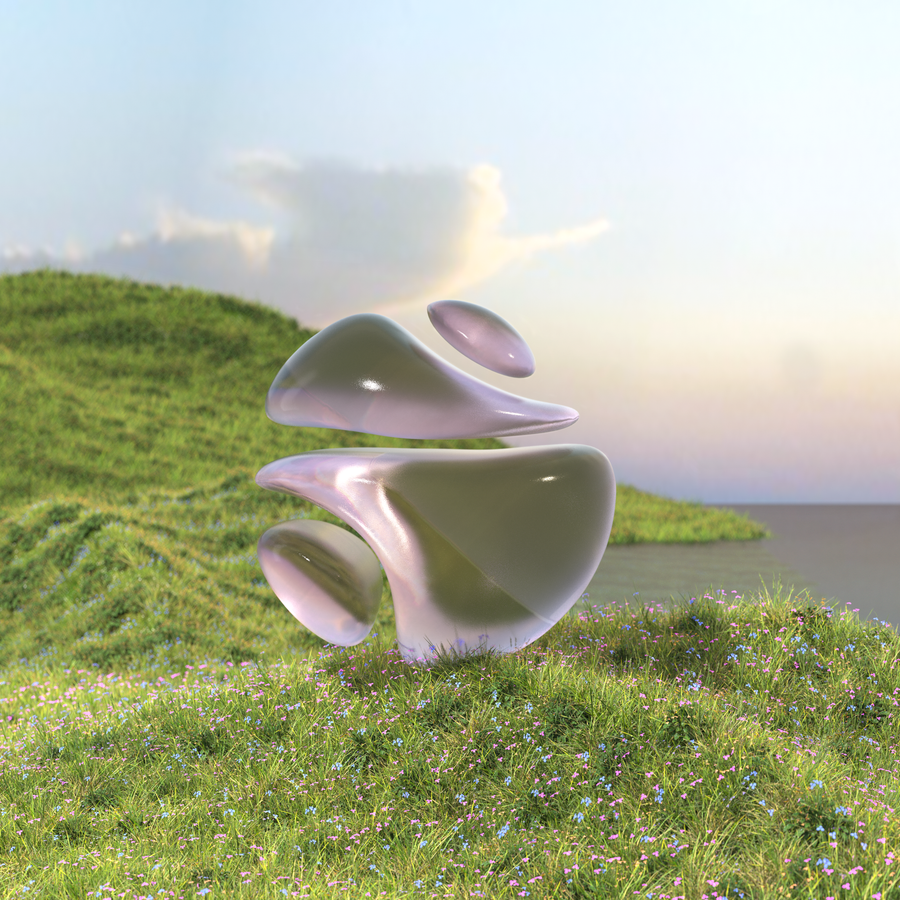 Garden series is a collection of 3D visuals that mixes the exploration of bucolic environments and abstract specular materials (glass).