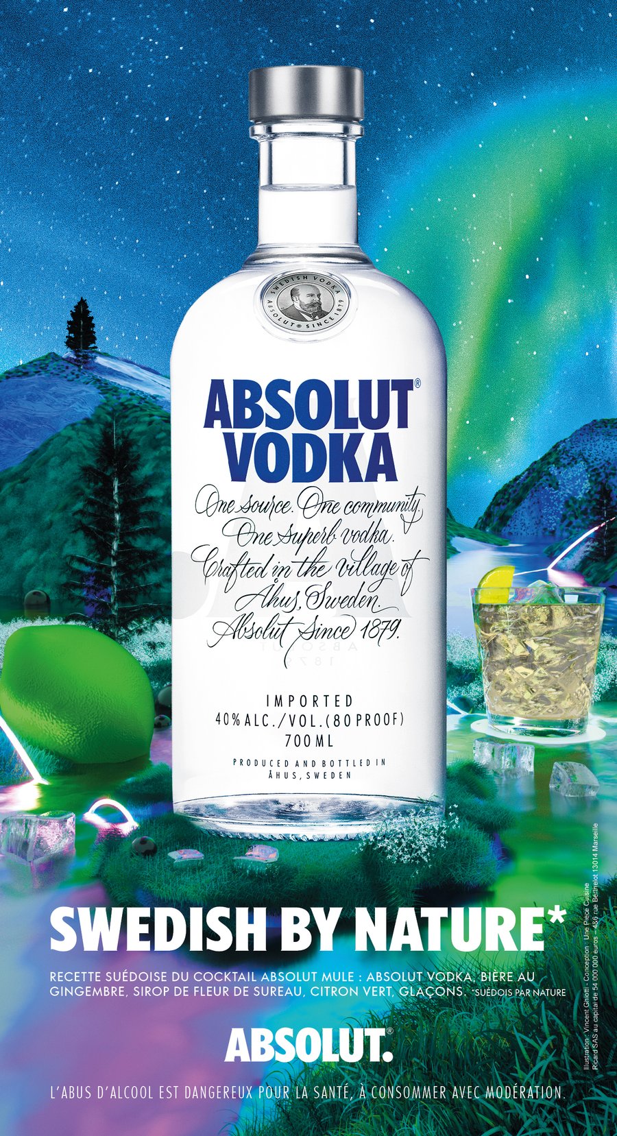 — Every year, Absolut collaborates with a different illustrator to create the back cover of the "Bars d'auteurs" supplement in Le Fooding guide. The illustration incorporates elements of cocktails and Swedish landscapes, drawing inspiration from the brand's latest graphic campaign.