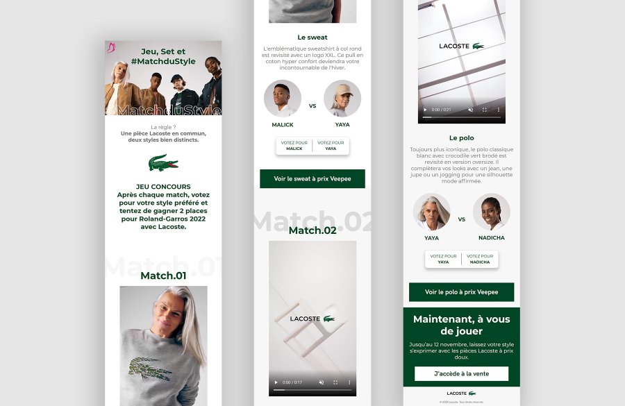 Parce que les vêtements de Lacoste s’engagent envers la diversité et prônent la différence, nous avons mis en avant cette complémentarité, non genrés et non âgés. Une réelle réussite et un très bon boost de conversion.