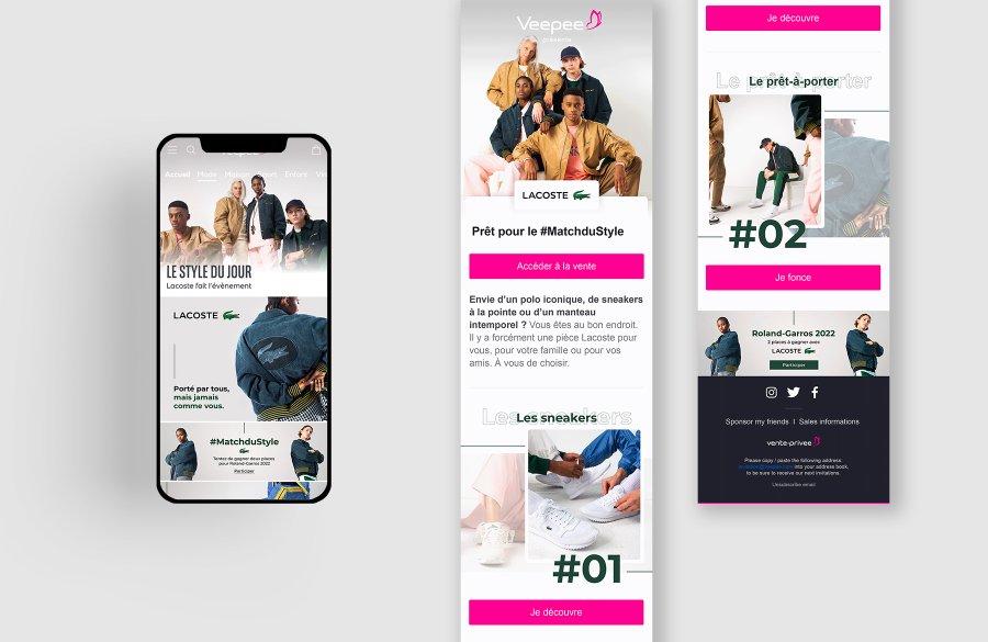 Onglet Mode chez Veepee - Email - Mini-Site et Jeux concours - Réseaux Sociaux - Shooting photo et Tournage vidéos. Avec les équipes de Veepee.