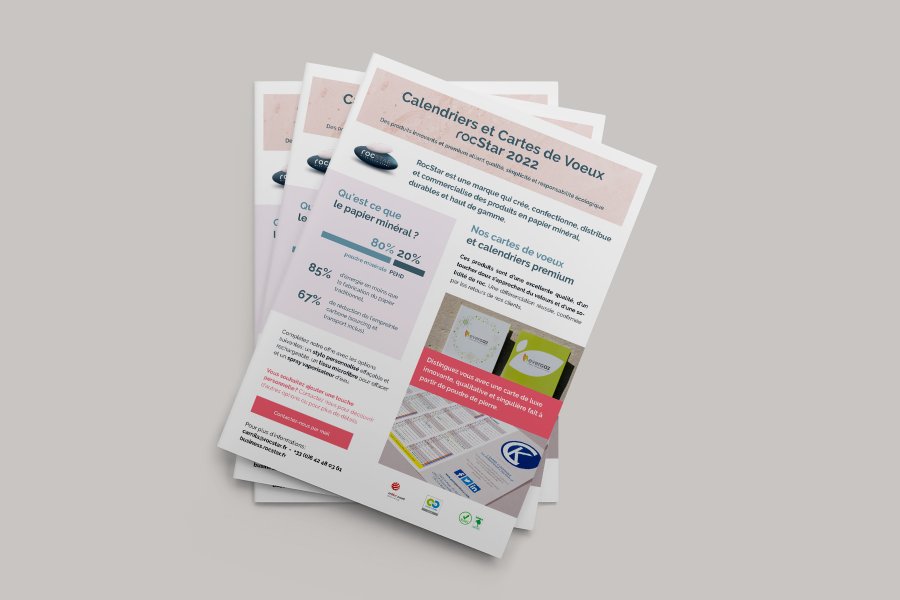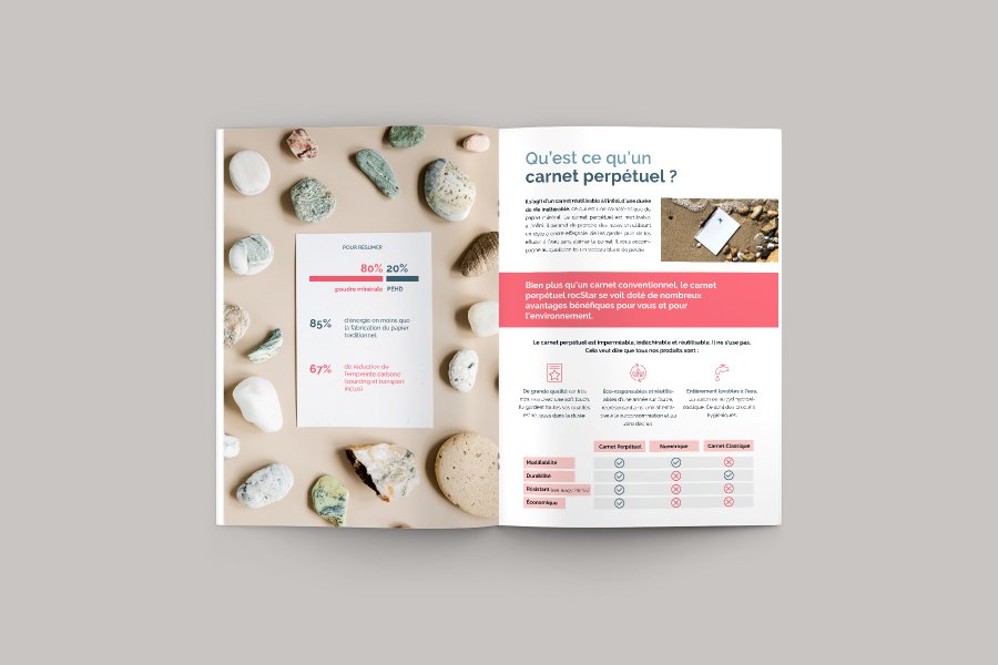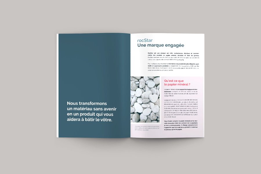 Un redesign de catalogues d'offres pour rocStar, entreprise qui prône le papier minéral.