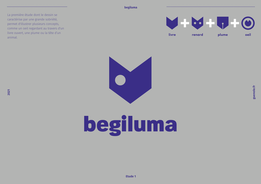 La première étude dont le dessin se caractérise par une grande sobriété, permet d'illustrer plusieurs concepts, comme un oeil regardant au travers d'un livre ouvert, une plume ou la tête d’un animal.