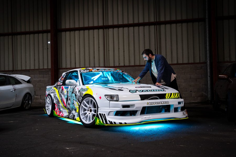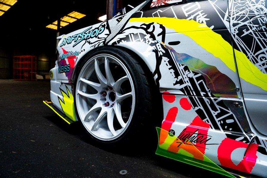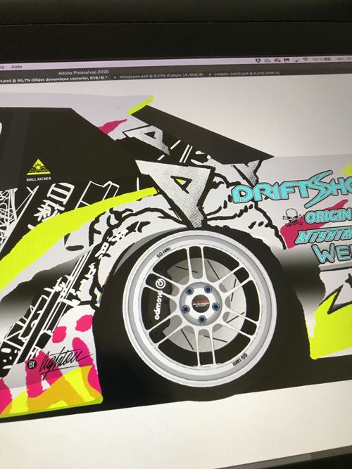 My father was a mechanic, I grew up in his garage and passed many times in Dijon-Prenois track’s paddocks during trackday. As a teenager I fell in love with the japanese car culture, and drift took a BIG place in my heart ! For me it’s a huge pop culture mouvement, there is so much different styles in only one practice. At this time I wanted to be a car designer and that’s how I discovered my real place in this world, in Art. And one day, without knowing that, Mike Kauffmann, the world rewarded french drift driver, gives me the opportunity to work on my child dream with my adult eyes.