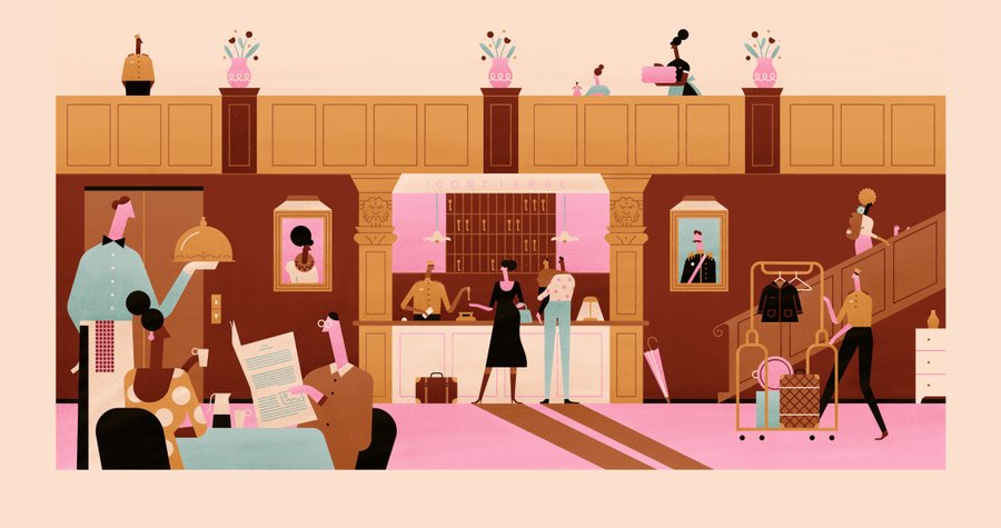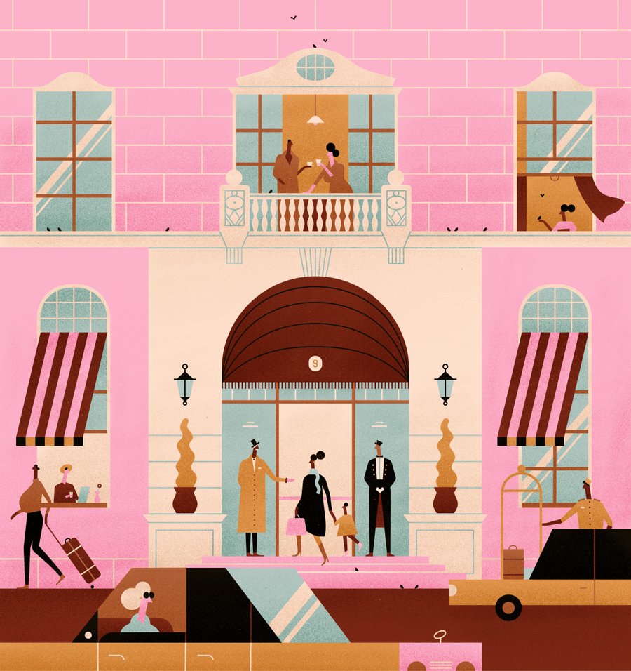 Wes Anderson inspired illustrations for Aiglon Magazine.