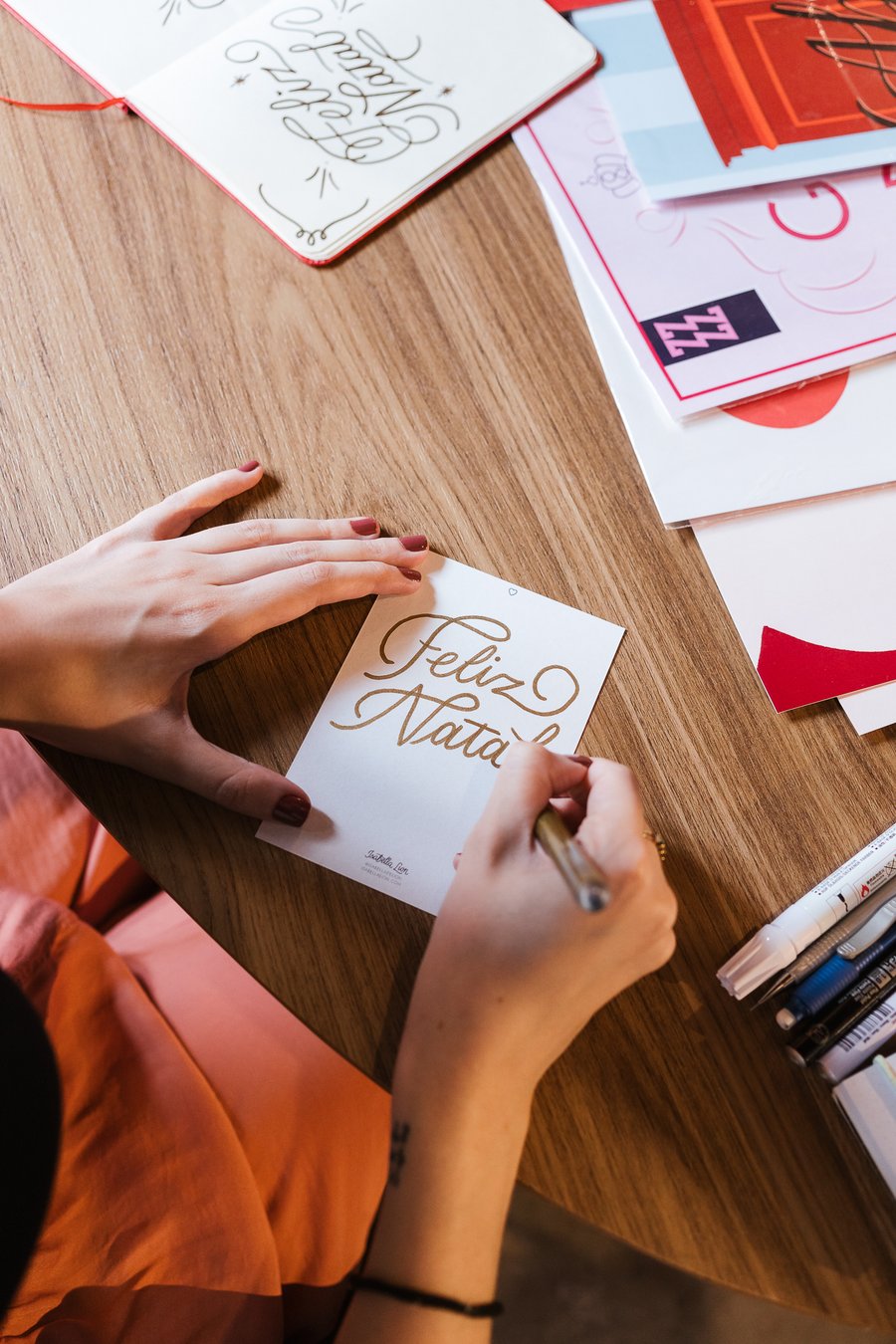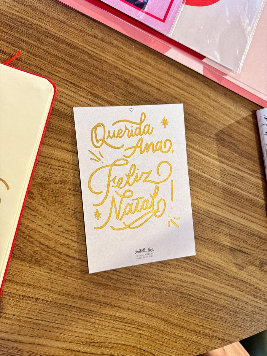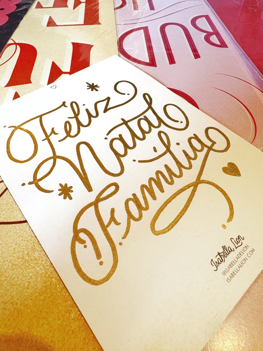 Personalized calligraphy on Christmas cards and gift bags for two days in Campinas, Brazil.
