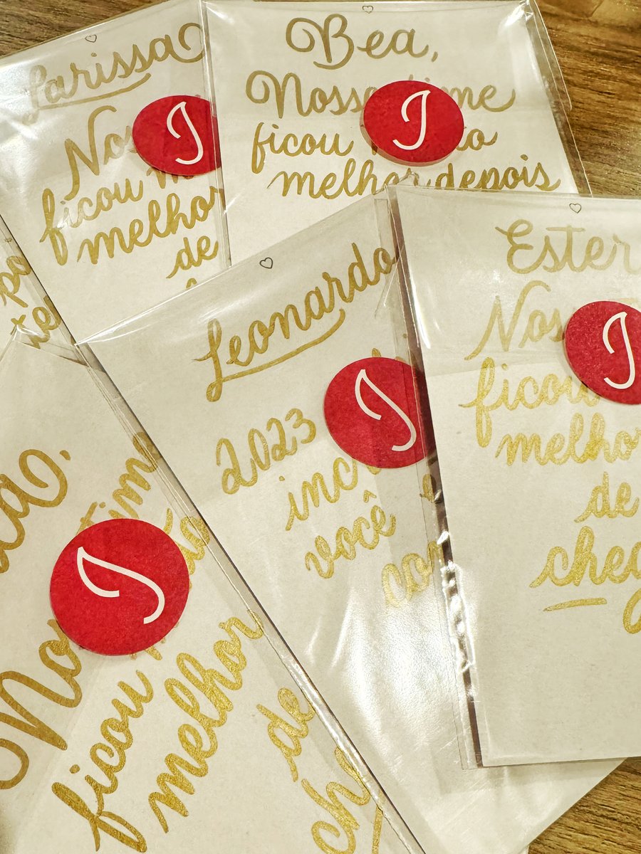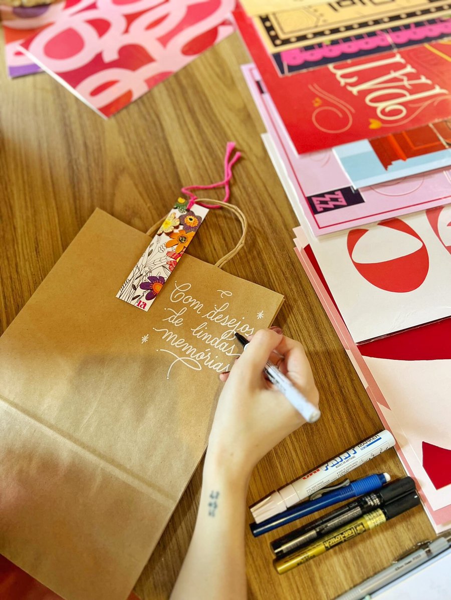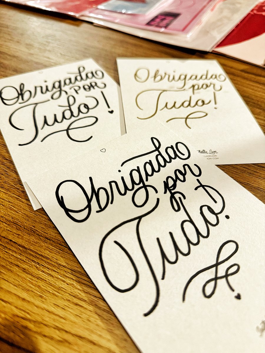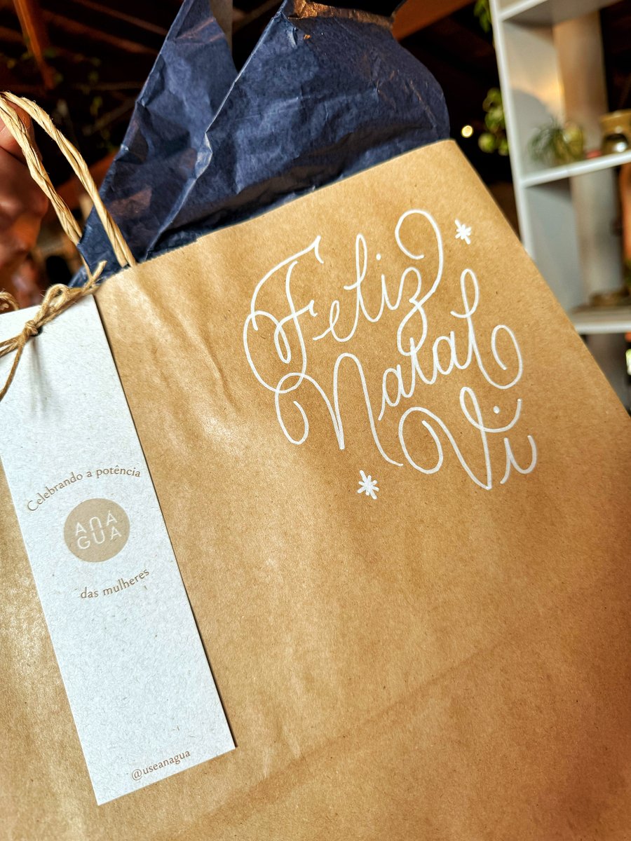 Personalized calligraphy on Christmas cards and gift bags for two days in Campinas, Brazil.