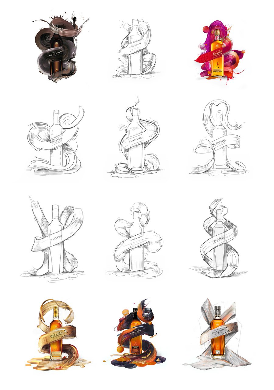 The idea was to create 6 designs to be applied across the range of Johnnie Walker variants: