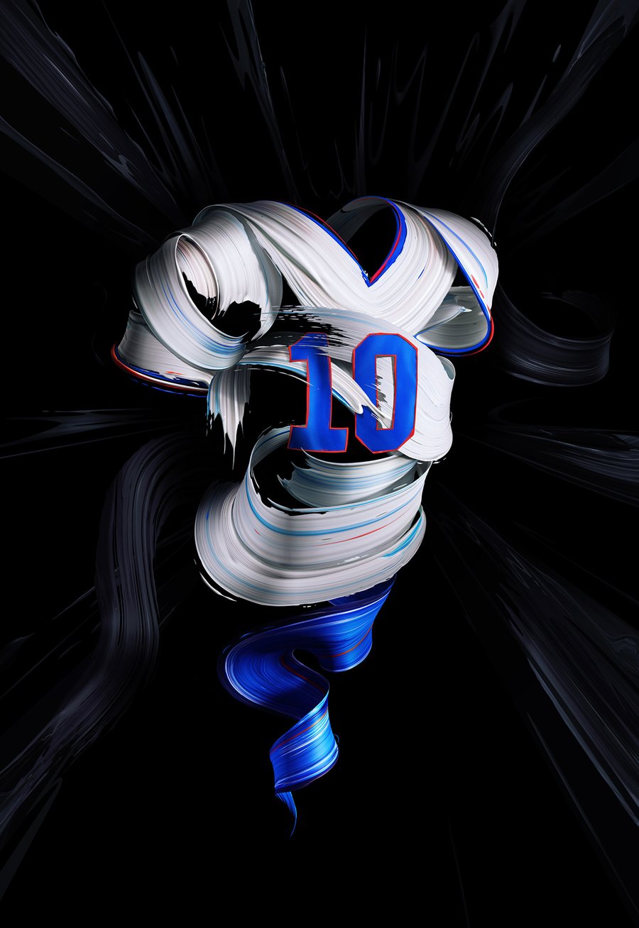 It features the NY Giants jersey, and this year it's inspired by their 1990’s uniforms. To me "team spirit" and “strength in identity" were the underlying keywords for this one, and I focused solely on the jersey motive, created using my staple painterly style.