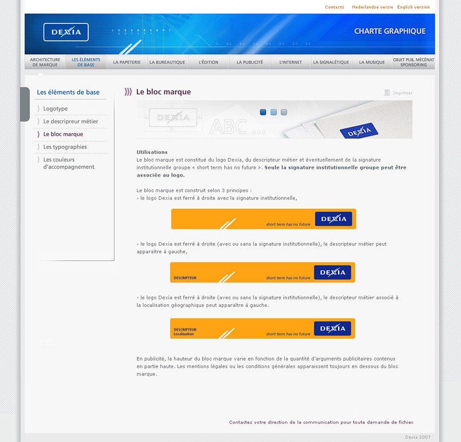 Création du style visuel web Dexia : Refonte site web , charte graphique et sonore+ Conception et création graphique