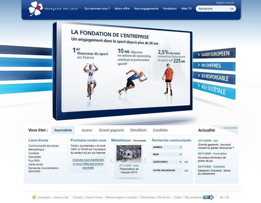 Refonte site Fondation FDJ / Création site Responsabilité des joueurs :+ Conception et création graphique du style web corportae FDJ