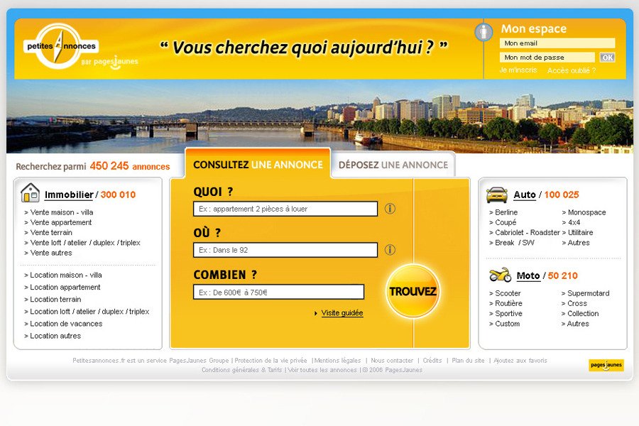 Création du site web Petites annonces :+ Conception ergonomique / Technique (géolocalisation Mappy)+ Conception et création graphique