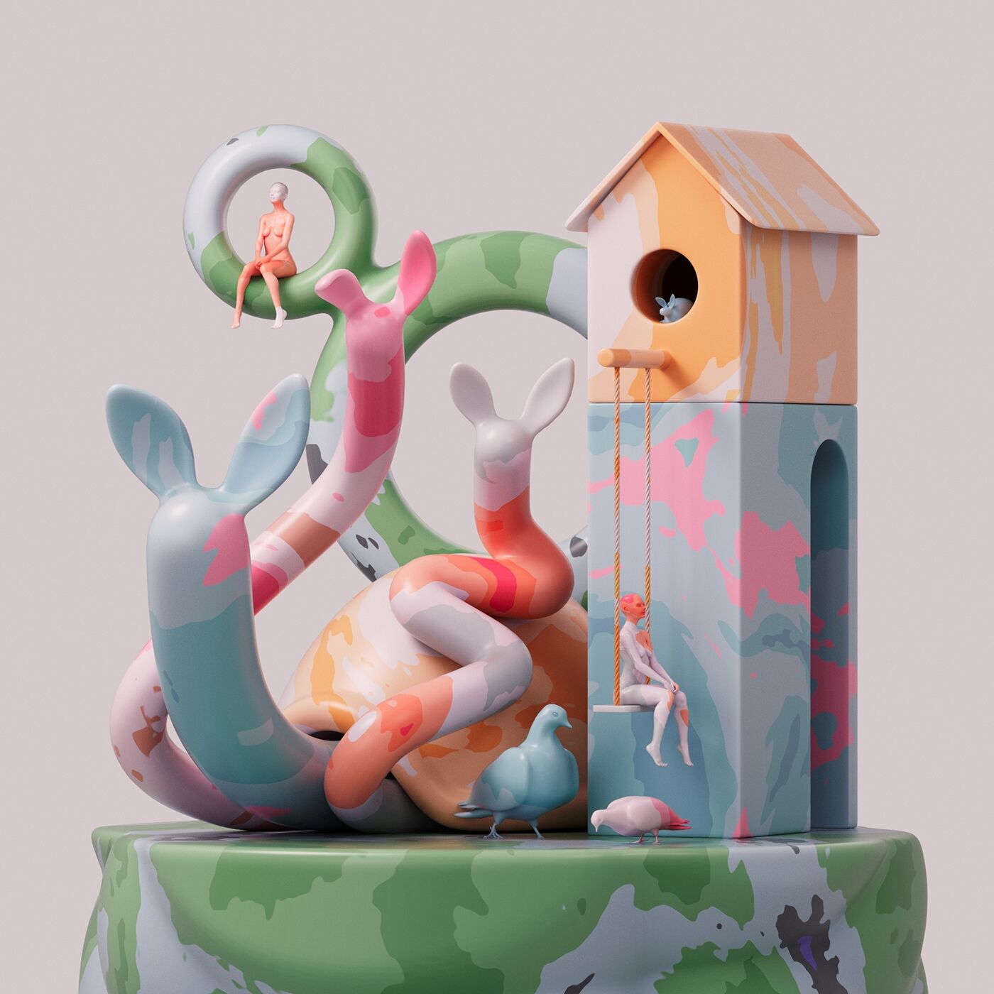 Siddhant Jaokar alias Hyperthalamuscorp est un digital artist basé à Bombay. Formé aux subtilités de la 3D lors de son expérience de designer industriel, Siddhant s’est rapidement servi de ses compétences techniques pour matérialiser l'univers qui l’habite. Formes douces, matières plastiques et couleurs pastels y sont magnifiées grâce à l’excellent niveau de ses rendus 3D quasiment réalistes. Le résultat est une collection inattendue de compositions visuelles constituées d’objets ludiques et abstraits.