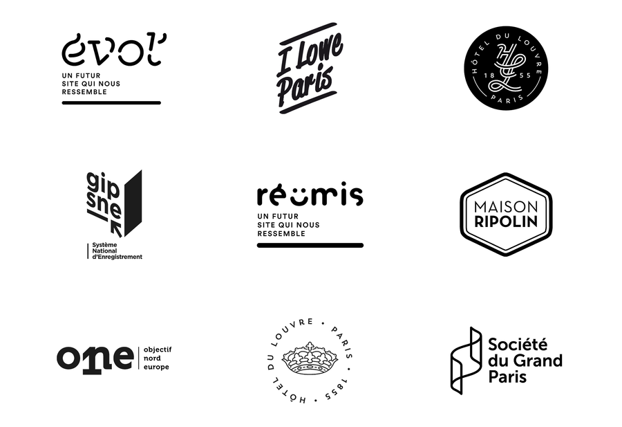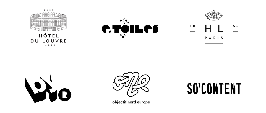 Quelques exercices graphiques et typographiques pour des marques,