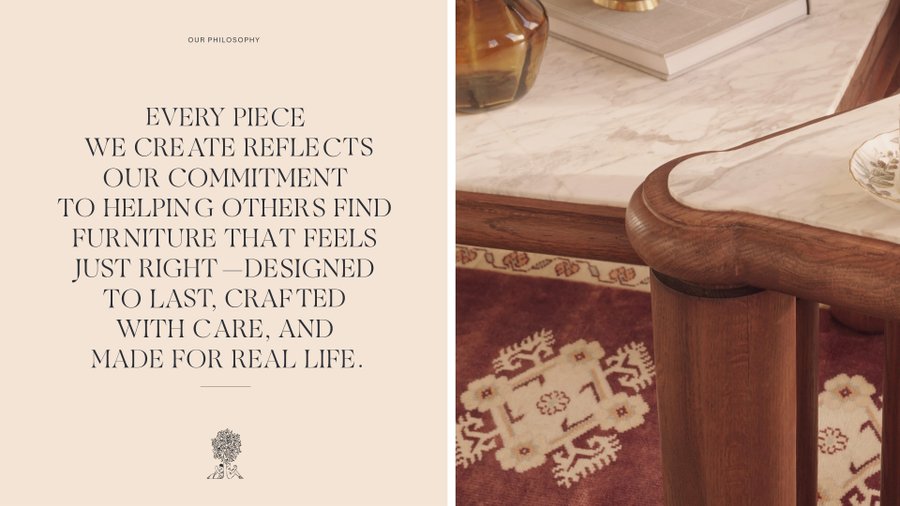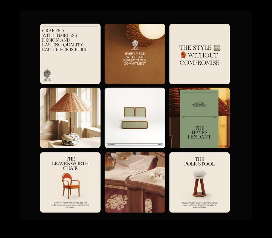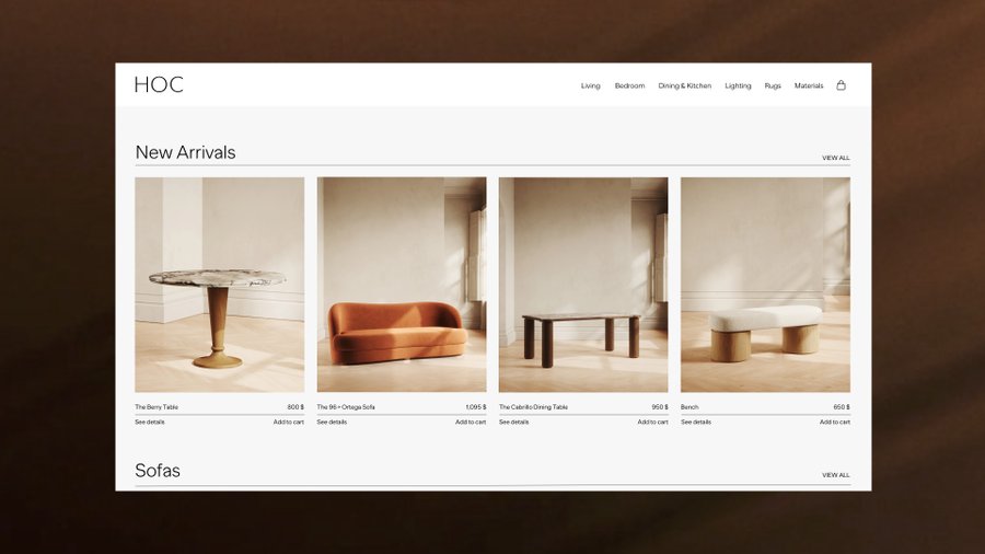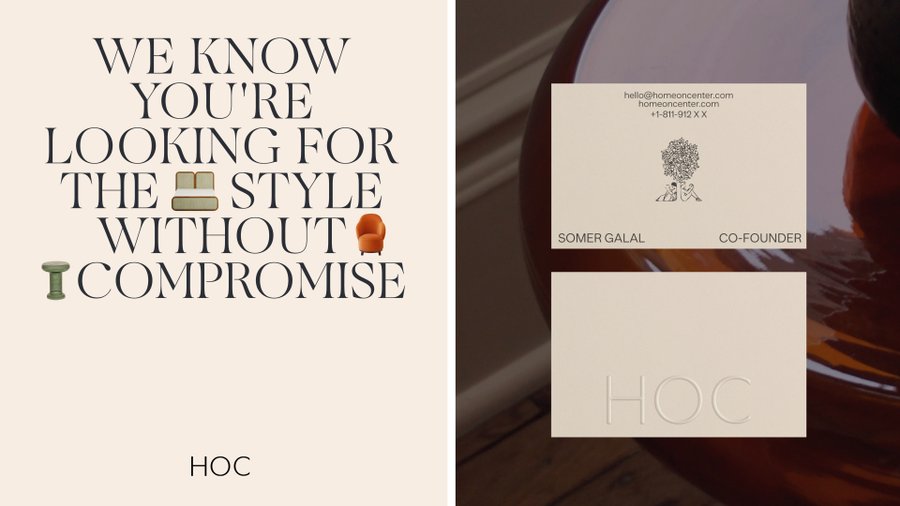 We partnered with Home On Center (HOC), a California-based furniture studio, to create a visual identity that reflects its core values and distinctive style. HOC designs pieces with soul and intention, combining natural materials — solid wood, carved oak, raw linen, polished marble — with finishes made to last. Each object is produced in small series by skilled artisans, striking a delicate balance between beauty, function, and longevity.