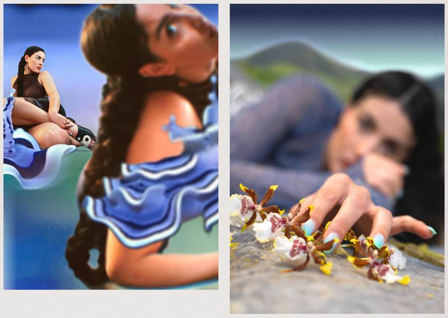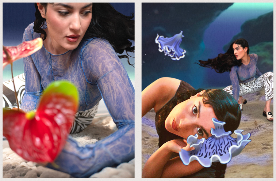 Direction, production and post-production of a photographic series. Artistic and creative exchange with Linda Bouyacoub. AI backgrounds and creatures with midjourney.