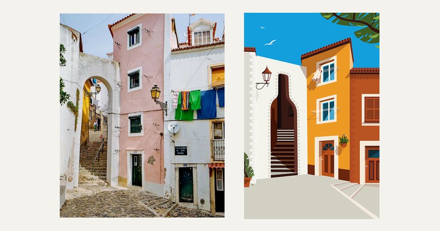 LGDM commissioned us to design a poster that captures the essence of Portugal. The concept begins with a typical alleyway in Lisbon and incorporates vibrant colors, earthenware, sunshine, and a sense of joy and vitality that is emblematic of Portugal. An arch-shaped bottle design is integrated into the poster, symbolizing the spirit of exploration, discovery, and surprise that awaits readers in the new edition of LGDM.