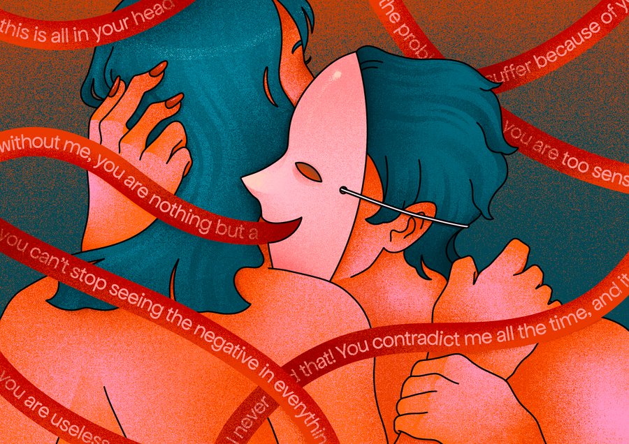 J'avais envie d'illustrer un article de presse. J'ai choisi un sujet qui me tenait à cœur dans un article du journal Le Monde, à savoir les pervers narcissiques. L'idée principale était de travailler autour du concept d'un vampire qui draine l'énergie de sa victime en l'encerclant de ses paroles toxiques, comme des filets dans lesquels sa proie ne peut lui échapper.