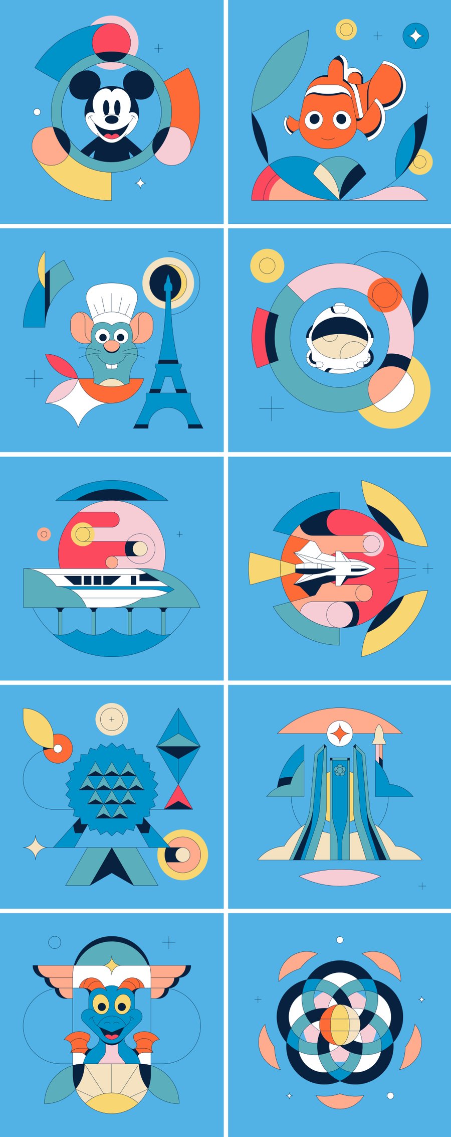 20 icon badges to commemorate the 2024 Reimagined Epcot collection