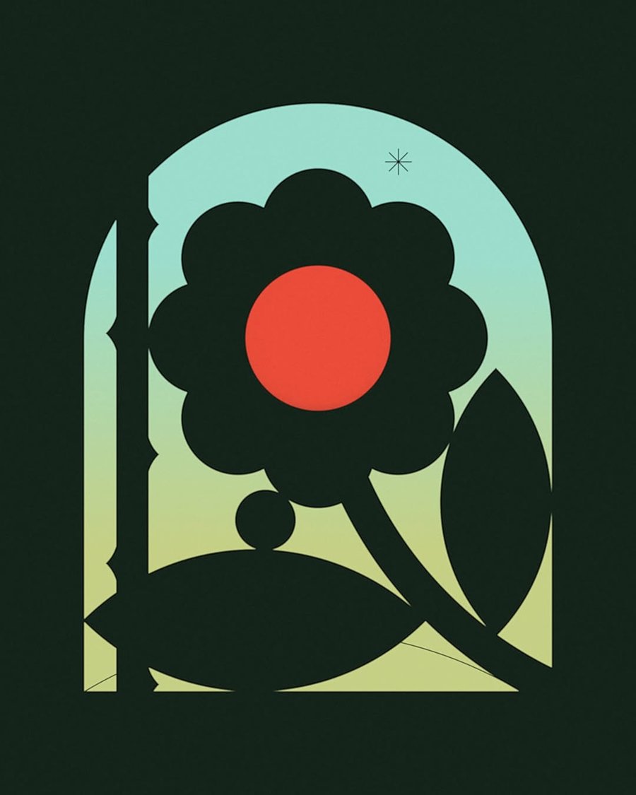 Alliant une forte culture créative, et une exigence graphique extrême, Calvin Sprague est un artiste déterminé. Vous ne trouverez pas dans son portfolio d’image qui ne soit parfaitement structurée et équilibrée. Au contraire, chaque œuvre est un petit bijou d’harmonie, chaque courbe est parfaitement réfléchie, chaque couleur choisie avec finesse. Cet orfèvre de l’illustration, américain résidant aux Pays-bas, a développé très tôt une signature graphique audacieuse inspirée de Milton Glaser et de Saul Bass. Ces influences l’ont amené à développer un style incomparable, savoureux mélange de Bauhaus, de psychédélisme pop et de constructivisme coloré.