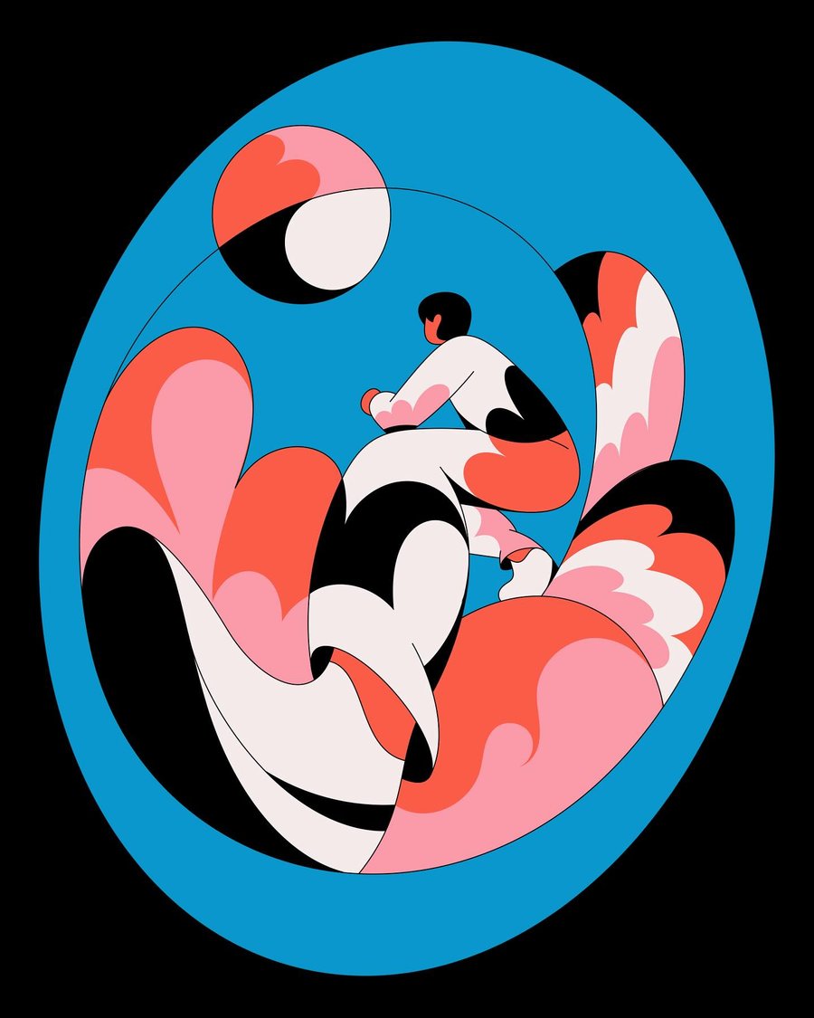 Alliant une forte culture créative, et une exigence graphique extrême, Calvin Sprague est un artiste déterminé. Vous ne trouverez pas dans son portfolio d’image qui ne soit parfaitement structurée et équilibrée. Au contraire, chaque œuvre est un petit bijou d’harmonie, chaque courbe est parfaitement réfléchie, chaque couleur choisie avec finesse. Cet orfèvre de l’illustration, américain résidant aux Pays-bas, a développé très tôt une signature graphique audacieuse inspirée de Milton Glaser et de Saul Bass. Ces influences l’ont amené à développer un style incomparable, savoureux mélange de Bauhaus, de psychédélisme pop et de constructivisme coloré.
