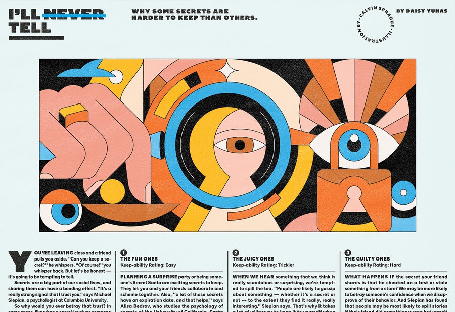 Alliant une forte culture créative, et une exigence graphique extrême, Calvin Sprague est un artiste déterminé. Vous ne trouverez pas dans son portfolio d’image qui ne soit parfaitement structurée et équilibrée. Au contraire, chaque œuvre est un petit bijou d’harmonie, chaque courbe est parfaitement réfléchie, chaque couleur choisie avec finesse. Cet orfèvre de l’illustration, américain résidant aux Pays-bas, a développé très tôt une signature graphique audacieuse inspirée de Milton Glaser et de Saul Bass. Ces influences l’ont amené à développer un style incomparable, savoureux mélange de Bauhaus, de psychédélisme pop et de constructivisme coloré.