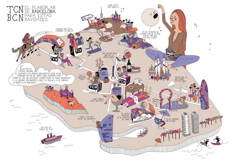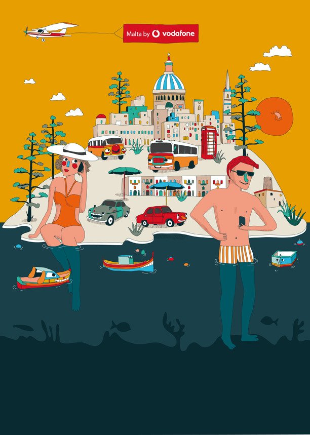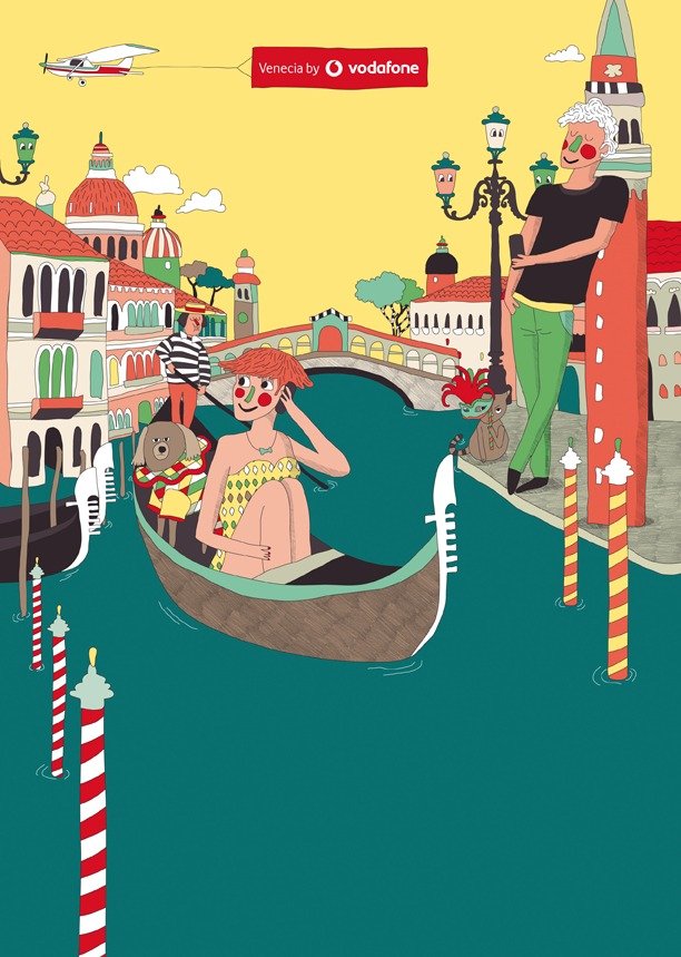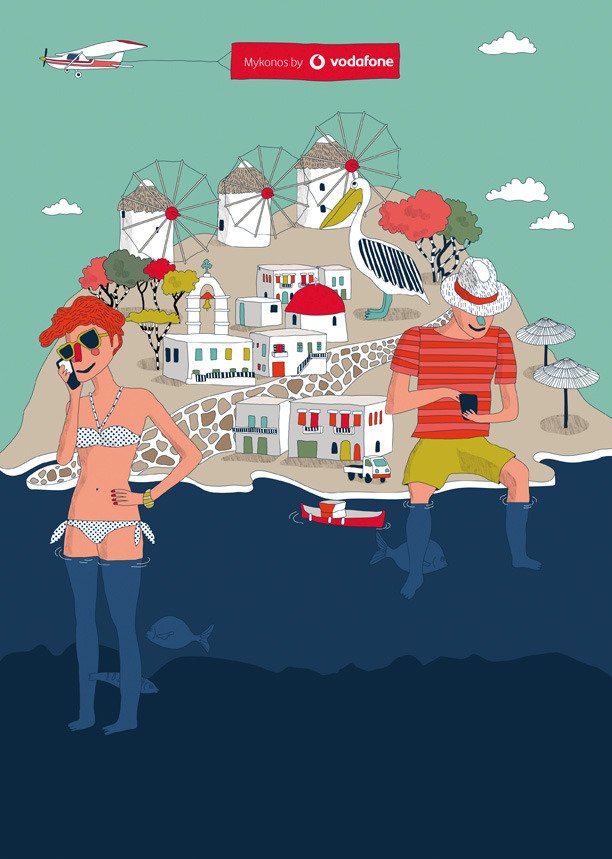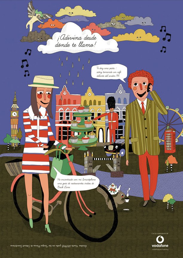 Illustrations pour Vodafone Espagne, parue dans Ling, le magazine de la compagnie aérienne Vueling. Chaque mois, Vodafone propose une nouvelle destination pour faire la promotion du roaming.