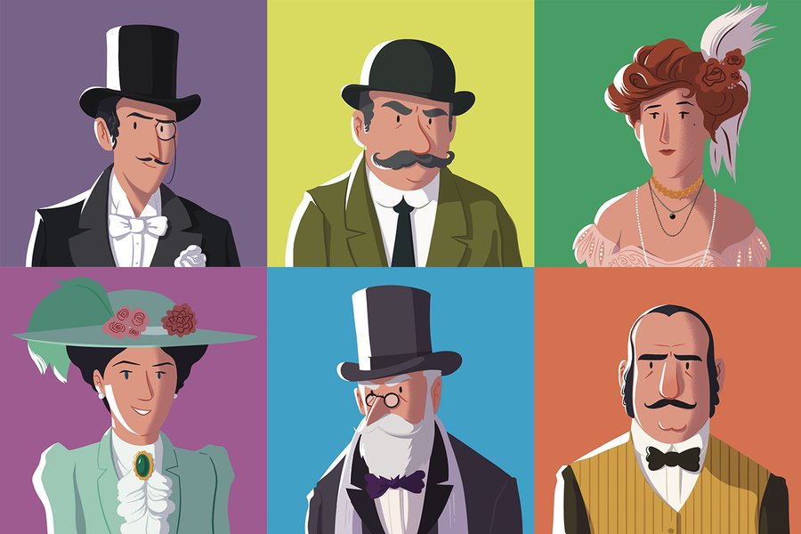 Illustration de la couverture, des doubles-pages et des personnages pour Le Médecin malgré lui de Molière.
