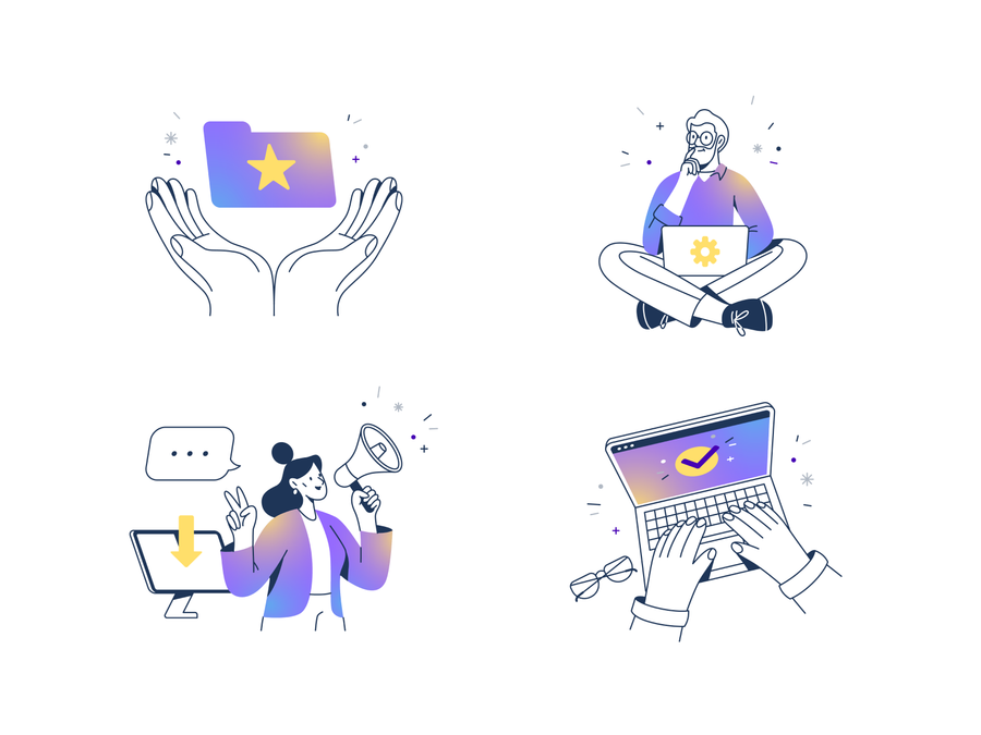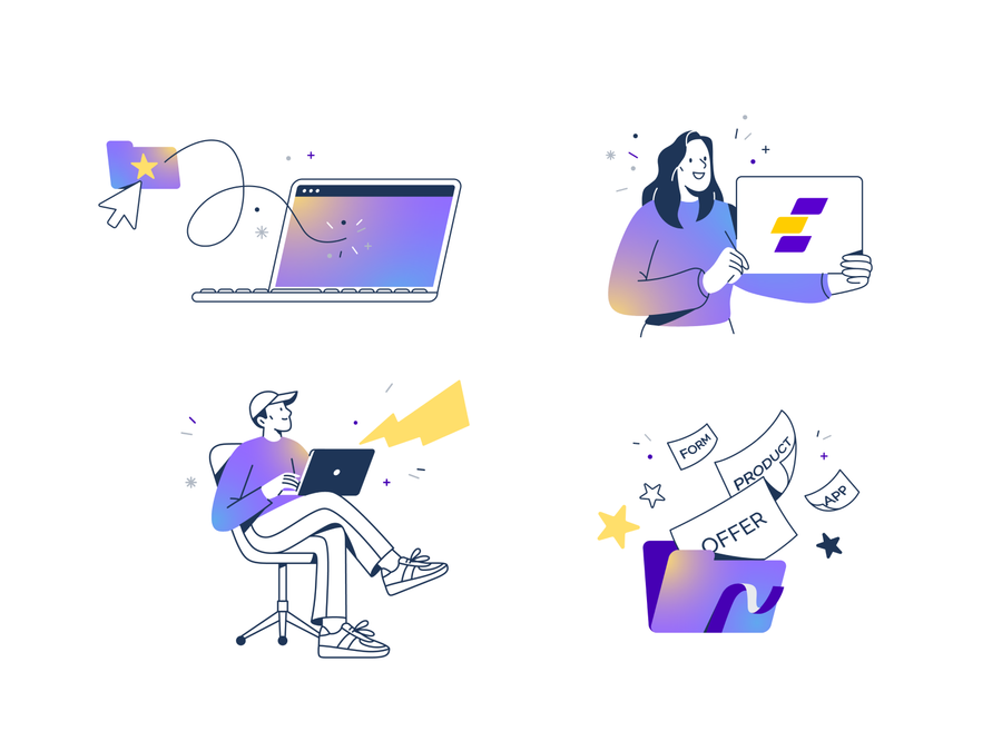Brand illustrations created for Everflow – a cloud-based platform that helps companies track, manage, and analyze their marketing campaigns.