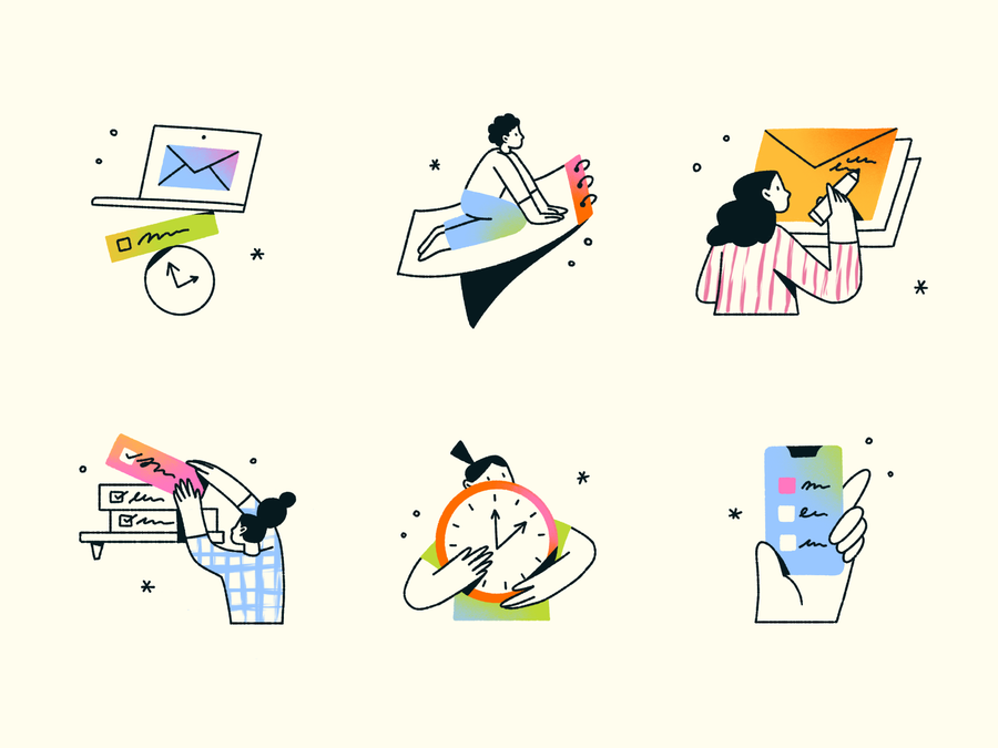 Personal project with a set of spot illustrations about productivity.