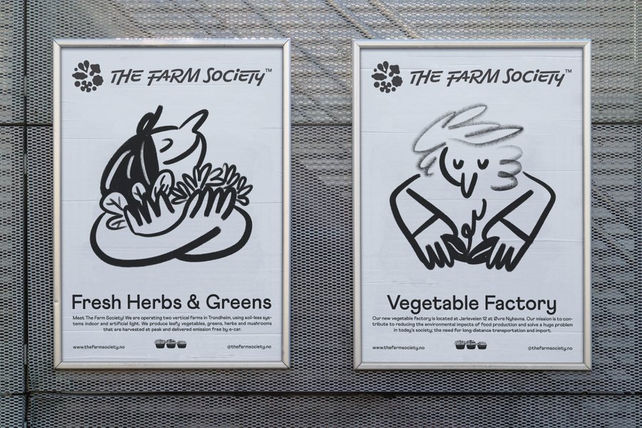 Maria Mileńko created the naming, visual identity, signage, and illustrations for The Farm Society.