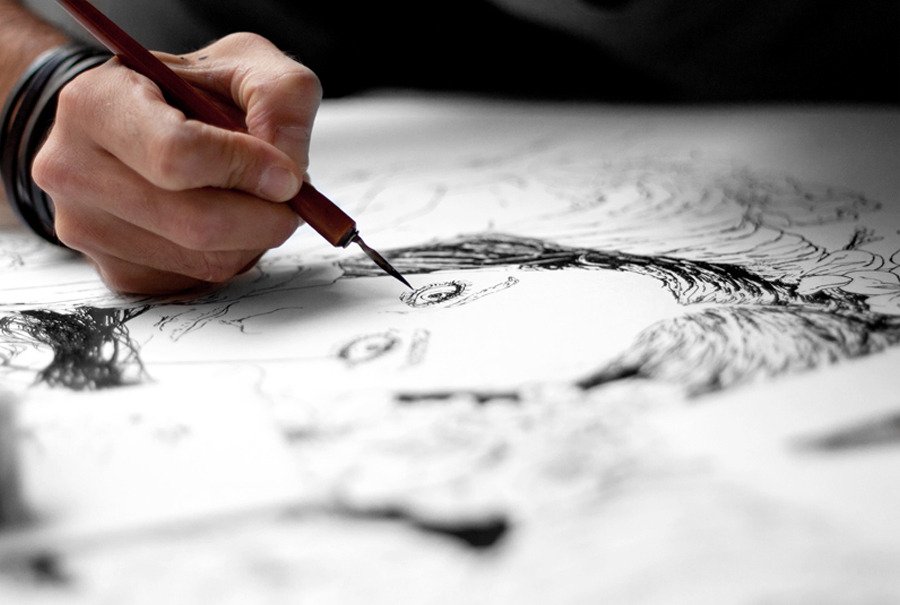 Matthieu Appriou mêle le dessin traditionnel à l'encre de chine, le média digital et esquisse à la mine de plomb. Ses illustrations se colorent à l’eau, à l'aquarelle ou en numérique, créant ainsi des images extrêmement détaillées, précises et poétiques.