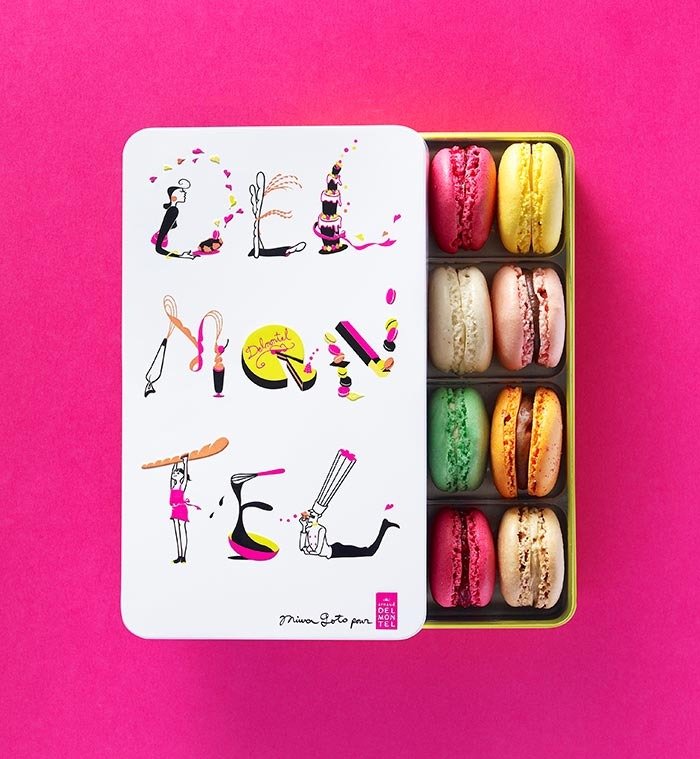 Illustration pour la boîte de macarons d'Arnaud Delmontel à Paris.