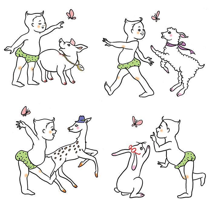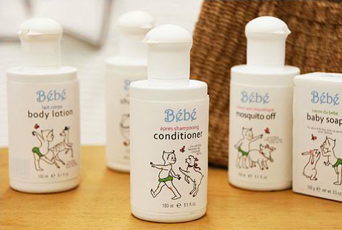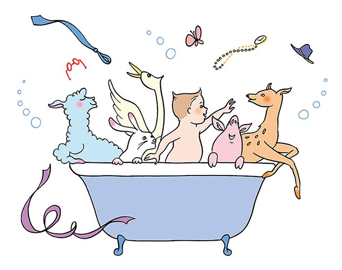 Packaging de nécessaire de toilette pour la série . Un bébé qui rencontre des animaux et prend son bain avec eux !