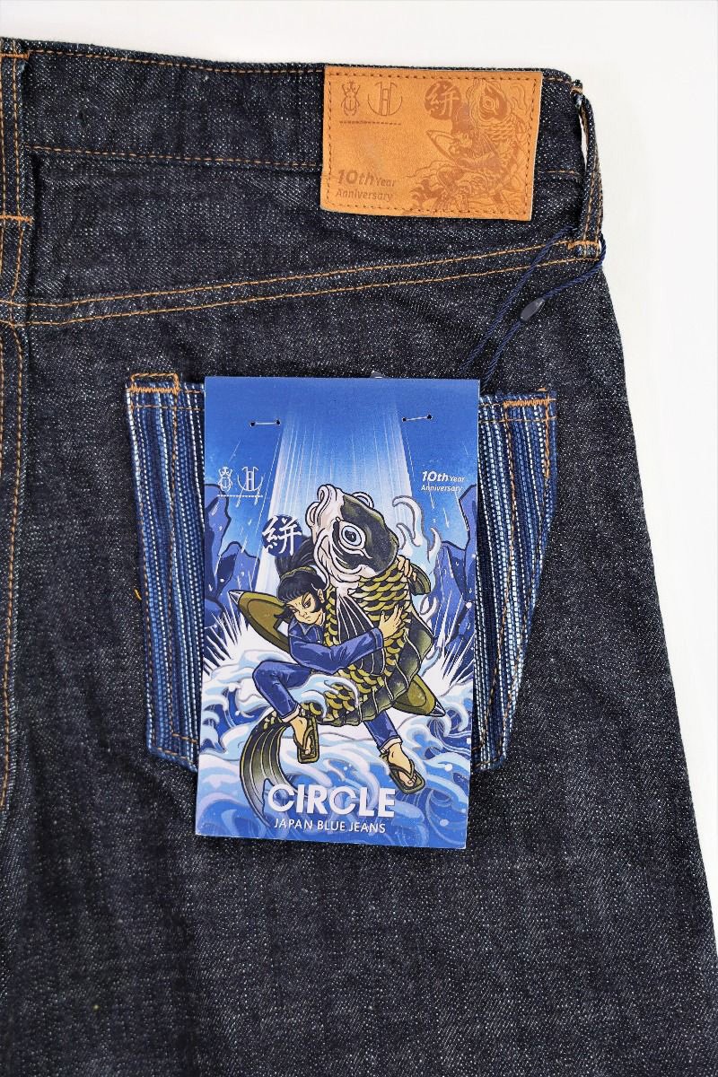 To commemorate Japan Blue Jeans' 10th anniversary, Denimio, one of the largest denim retailers in Japan, has released a limited-edition collaboration product that takes us back to ancient Japan. The "Kasuri (絣) Denim" features Kasuri fabric as the accent of the jeans, which is a traditional Japanese fabric known for its waterfall-like pattern. The pattern is created by a complex weaving and dyeing process that has been used in Japan for centuries.