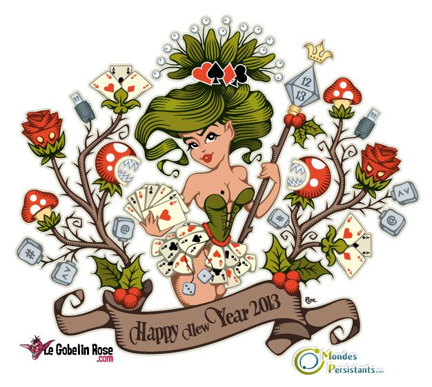 Commande des sites de jeux le-gobelin-rose.com et mondespersistants.com pour leurs vœux 2013. Version française et anglaise.