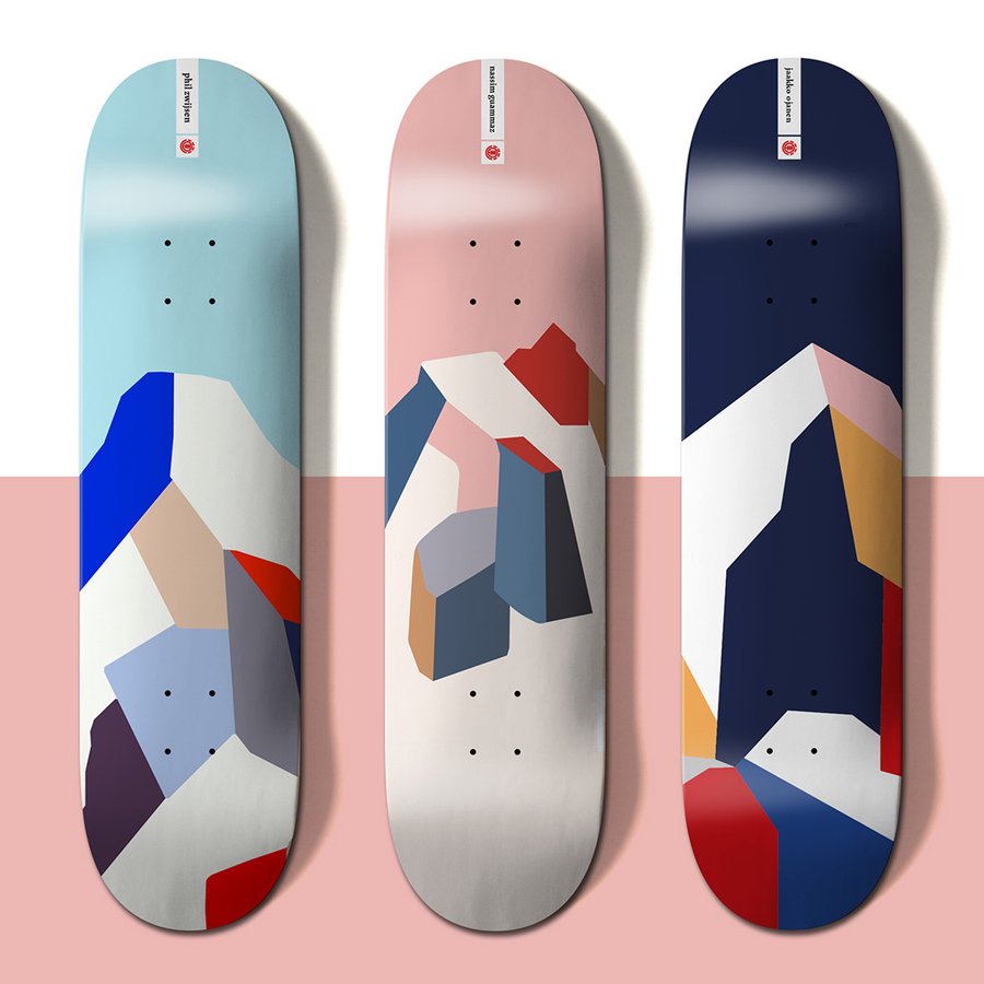 Création d'une série d'illustrations dans l'esprit de la montagne et de la glisse pour la marque Élement