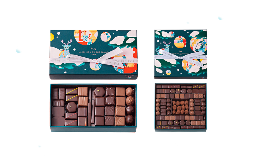 Collaboration avec La Maison du Chocolat pour la création de l'ensemble des produits de Noël 2018.